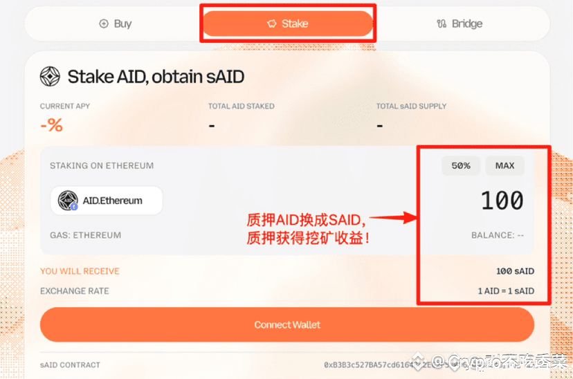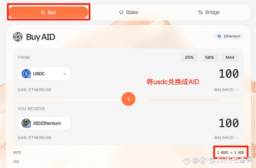 第二步:用 10U 换一点 AID(金额越大收获越多!但我们10u就够了!)