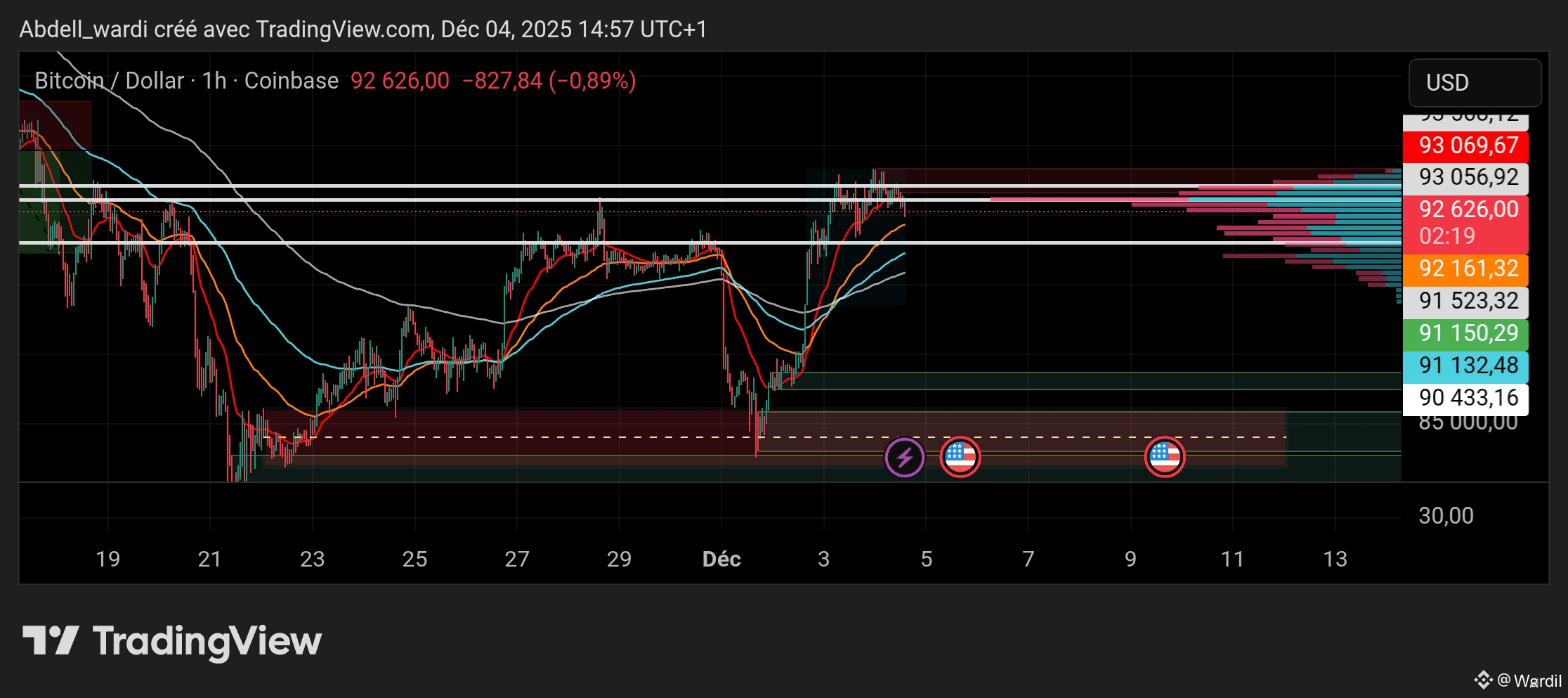 نعم، إذا أغلق فوق 93,000$ فريم الساعة → ستكون حركة صعود قوية وسريعة، وليست فقط ارتداد صغير.