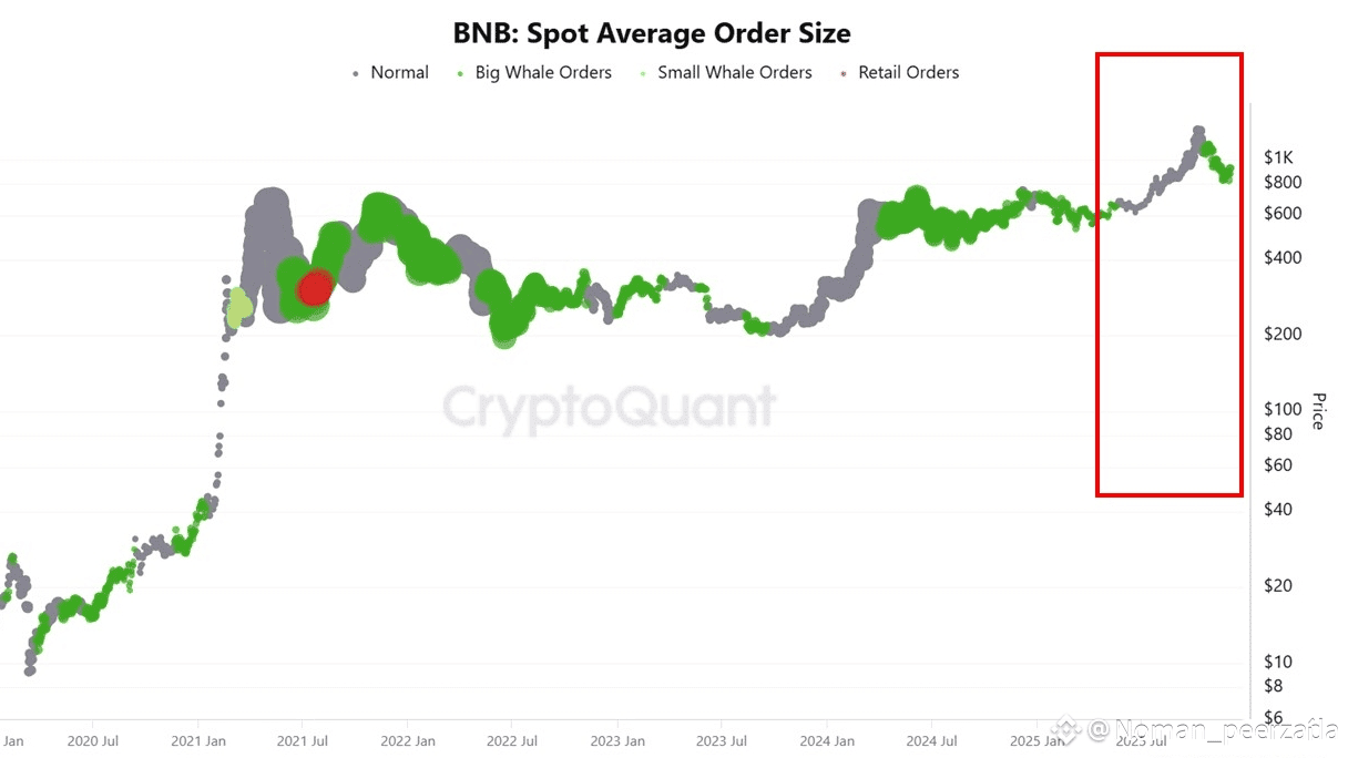 • Spot order flow in BNB shows a clear rise in large purchase clusters, indicating whale accumulation