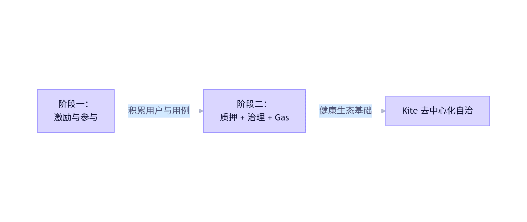 Mnoho blockchainových projektů otevřelo tokenové řízení v den spuštění hlavní sítě, což vedlo k monopolizaci hlasovacích práv ranými velrybami a komunita se stala pouhou dekorací. Kite zvolil opatrnější cestu: postupné uvolnění klíčových funkcí $KITE , nejprve pomocí pobídek k vytvoření ekosystému, a poté postupné přidělování řízení a ekonomických pravomocí.