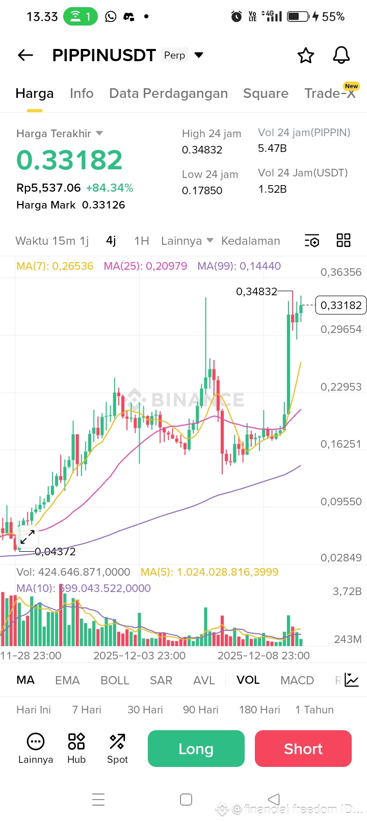 Berdasarkan hasil pencarian, kenaikan harga yang sangat tajam pada PIPPIN (PIPPINUSDT) didorong oleh kombinasi faktor spekulatif dan teknis, bukan murni fundamental proyek yang kuat: