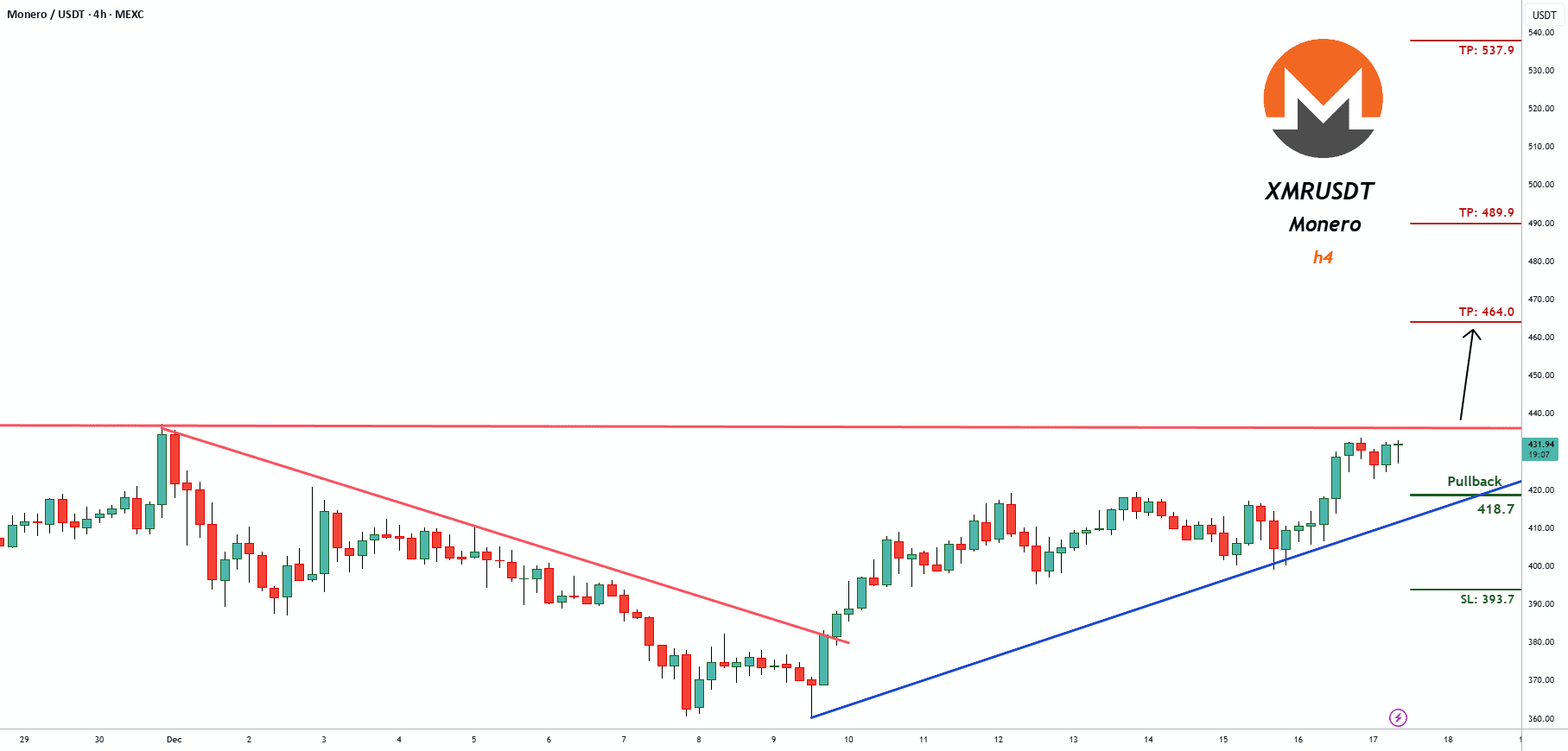 Obchodní signál je vidět v XMRUSDT Monero (4h)