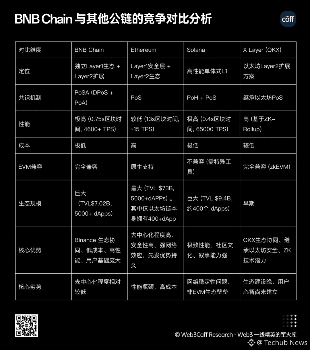 作为同由头部竞品支持的公链,OKX推出的Layer2网络X Layer是BNB Chain的直接竞争对手,尤其是在争夺交易平台存量用户和新兴项目方面。