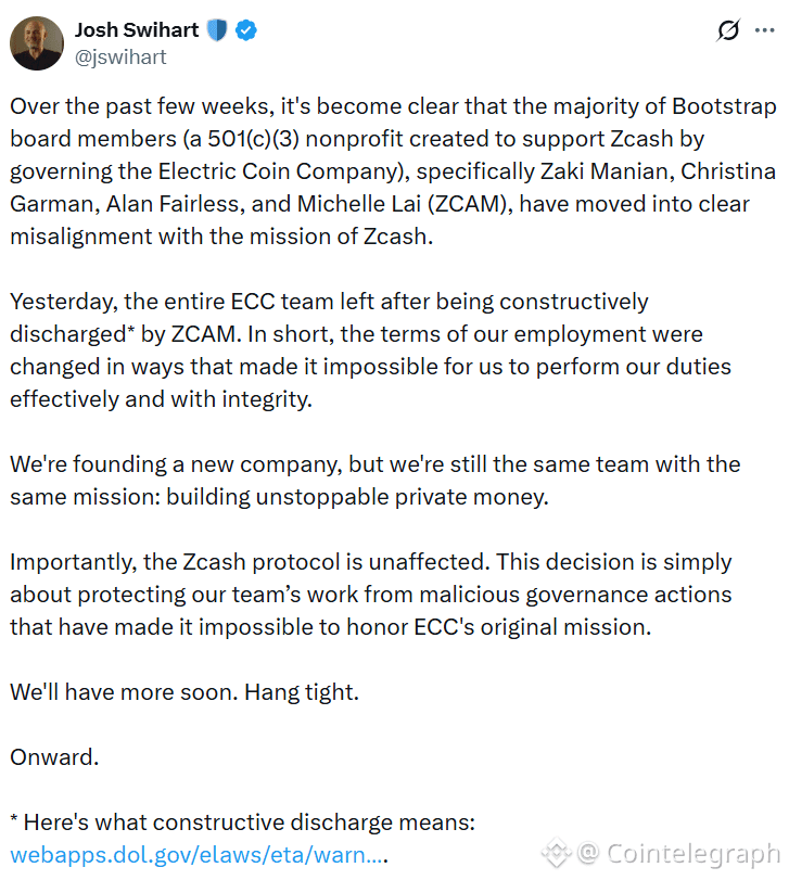 The entire Electric Coin Company (ECC) team behind privacy-focused cryptocurrency Zcash has split from Bootstrap, the nonprofit created to support the token, and plans to create a new company, according to CEO Josh Swihart.