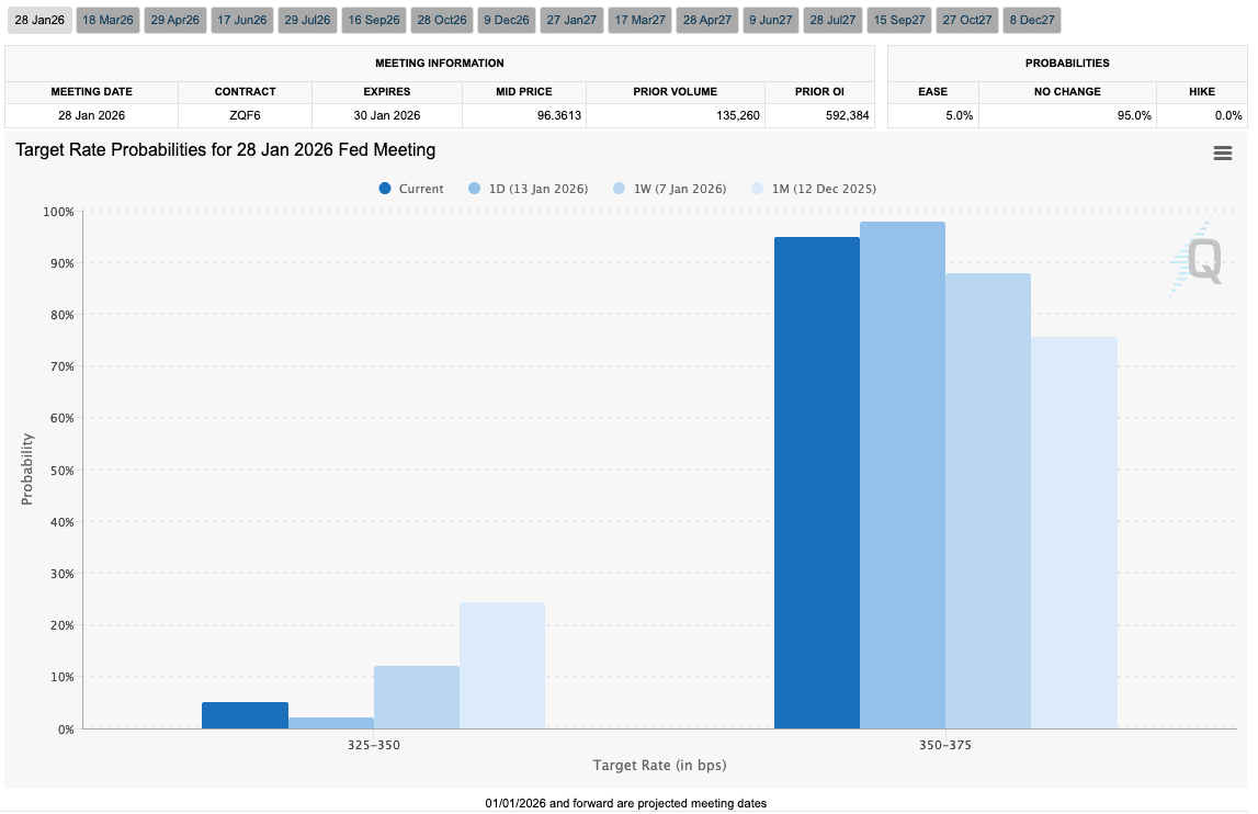 Pravděpodobnosti cílové sazby FED pro setkání FOMC 28. ledna (snímek obrazovky). Zdroj: Nástroj CME Group FedWatch
