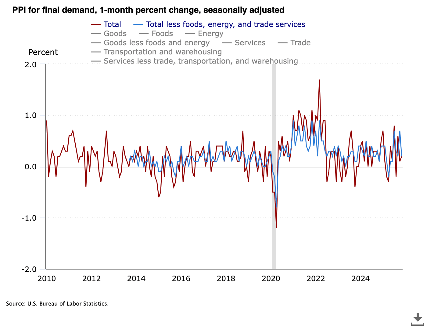Jak potvrdil Úřad pro práci (BLS), PPI a jádrový PPI za listopad 2025 dosáhly 3 %, zatímco očekáváno bylo 2,7 %.