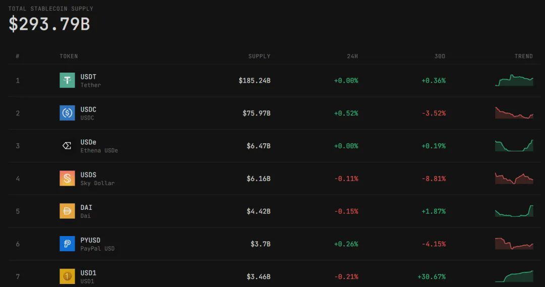 Z hlediska podílu stabilních coinů, USDT stále zaujímá relativně vysoký podíl, jak je znázorněno na obrázku níže.