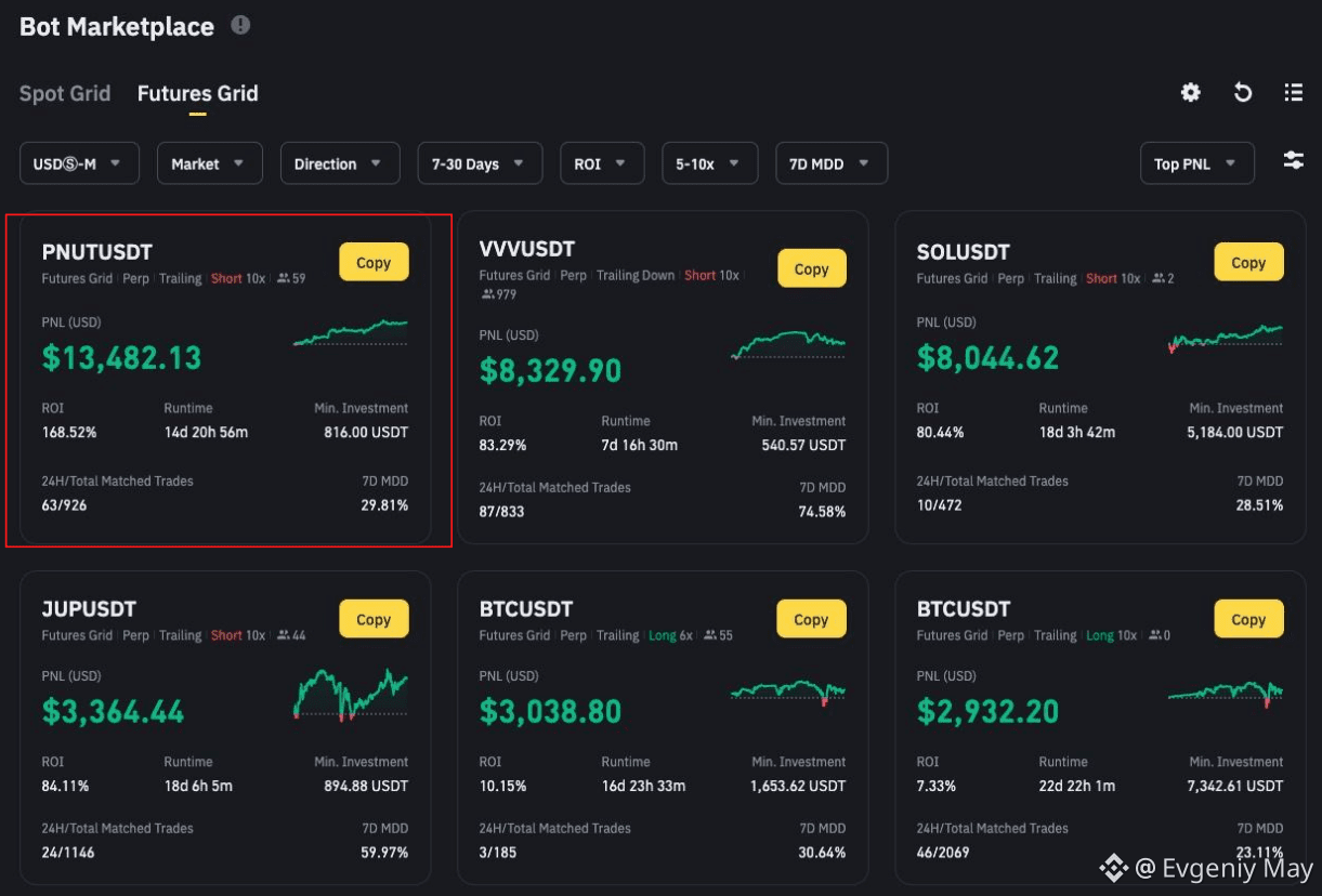 В марте 2025 года отличился Spot Grid бот на паре BTC/FDUSD c PNL + $210294 и ROI +1.31% за два дня