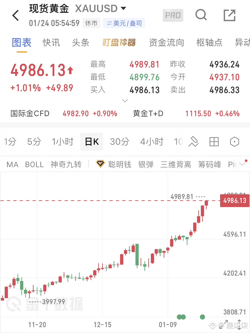 现货黄金$XAU 已强势突破4980美元/盎司关口,创下全新历史纪录;