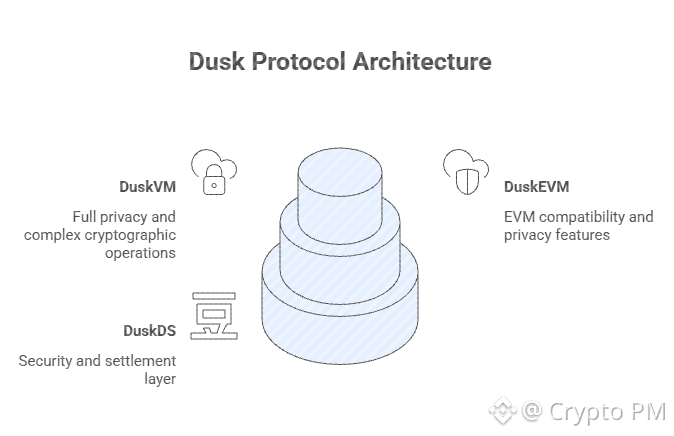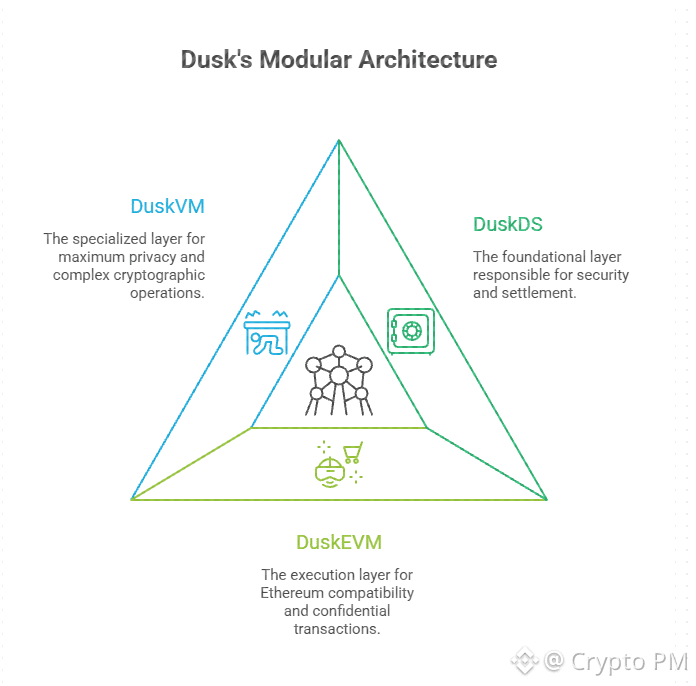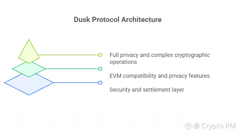 Most blockchains try to solve every problem in one layer and then wonder why everything becomes slow expensive or broken. Dusk did something less popular and more deliberate. It split the protocol into three layers. Not because it looks fancy in diagrams but because regulated finance does not tolerate shortcuts.