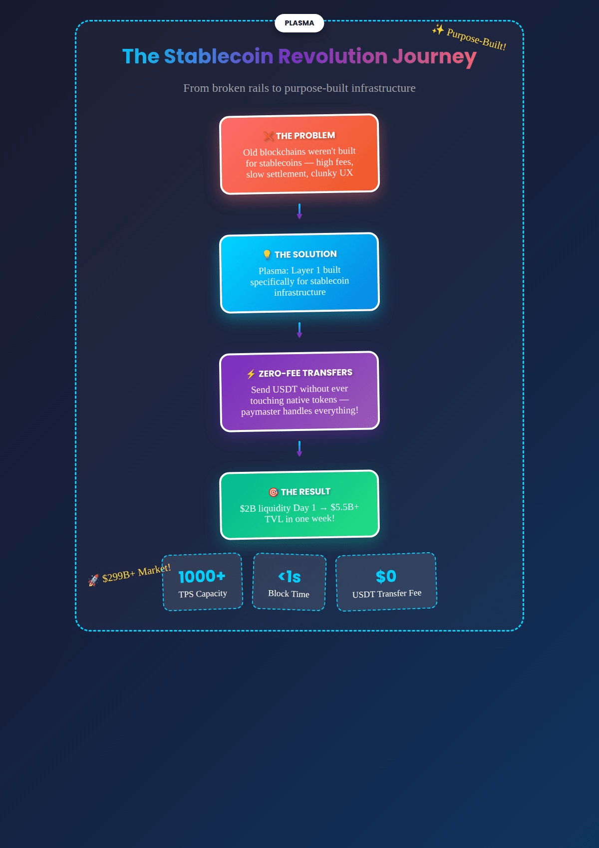 Globální finanční krajina se nachází na zásadním křižovatce. Zatímco stablecoiny explodovaly a představují více než 299 miliard dolarů v tržní kapitalizaci a triliony měsíčního objemu převodů, infrastruktura podporující tyto digitální dolary zůstává zásadně rozbitá. Transakce, které by měly trvat sekundy, se táhnou minutami. Poplatky, které by měly stát haléře, pohlcují významná procenta převodů. Koleje nesoucí peníze zítřka byly postaveny pro problémy včerejška.