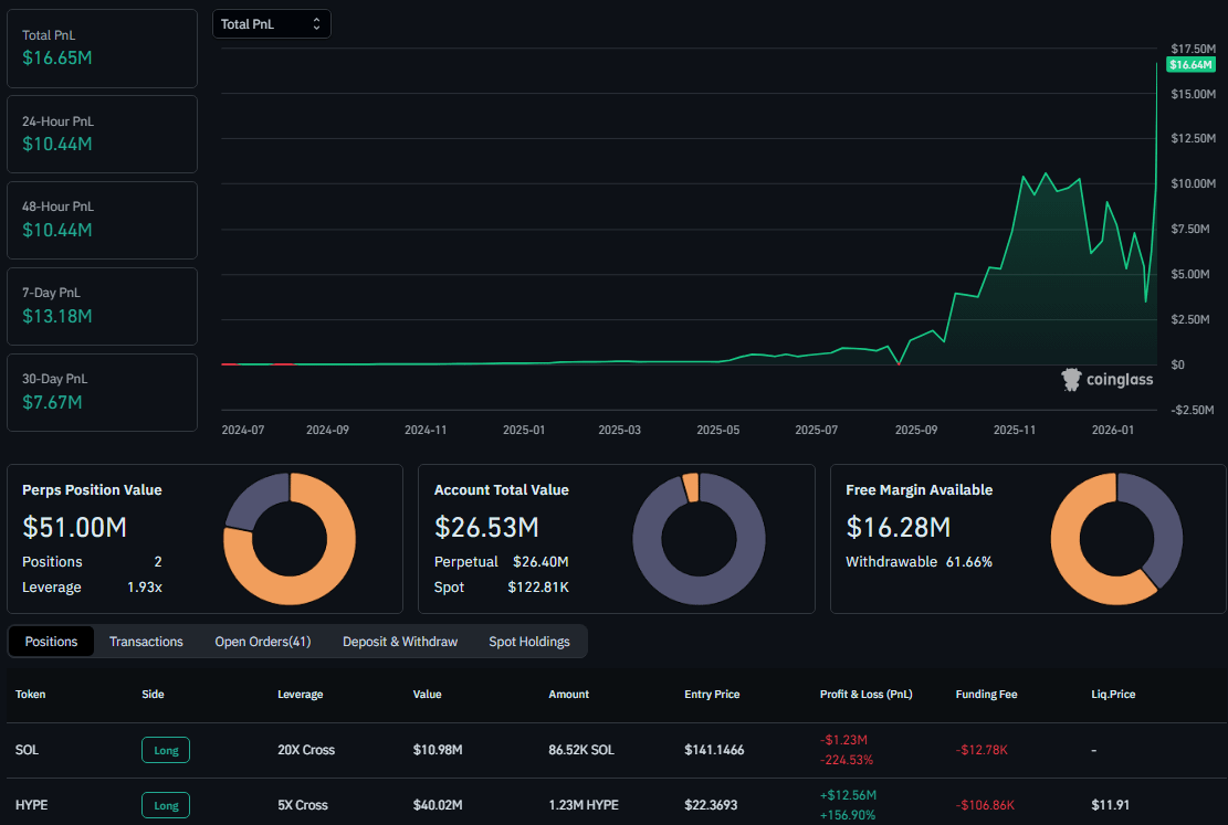 Když HYPE prorazilo $32, floating profit překročil více než 12 milionů USD!