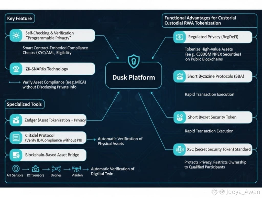 Functionally, Dusk offers several key advantages for custodial asset tokenization (RWA). Regulated privacy (RegDeFi) allows institutions to tokenize high-value assets (such as the €300 million securities in partnership with NPEX) on public blockchains without disclosing company secrets. Short Byzantine Protocols (SBA) ensure rapid transaction execution, crucial for efficient trading of physical assets. Furthermore, the XSC standard protects privacy while restricting asset ownership and transfer to qualified participants.