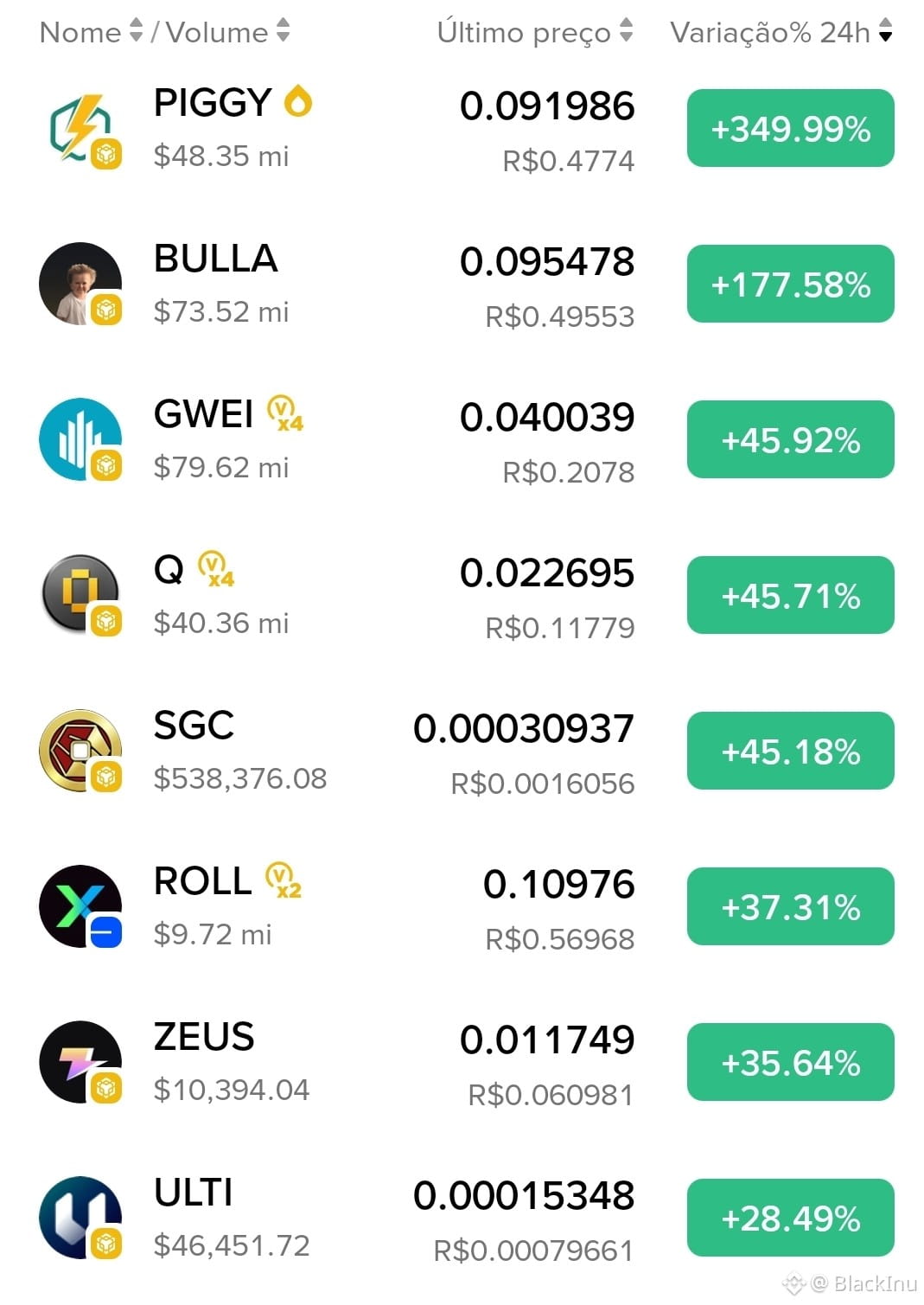 A montanha-russa emocionante dos altcoins continua: enquanto PIGGY mantém um ganho colossal de quase 350%, novos nomes surgem com altas igualmente expressivas. O mercado de criptos menores não dá trégua para quem busca ganhos rápidos, mas será que essa força toda vai se sustentar?