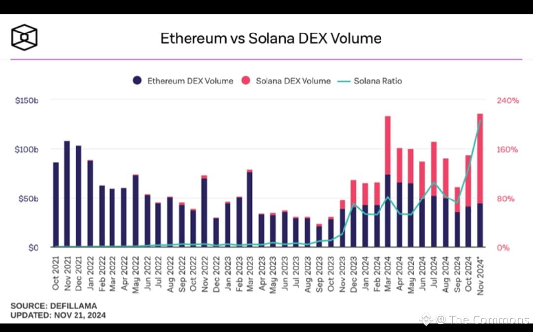 🚀 Solana recently overtook several metrics like DEX volume and daily transactions in certain months.