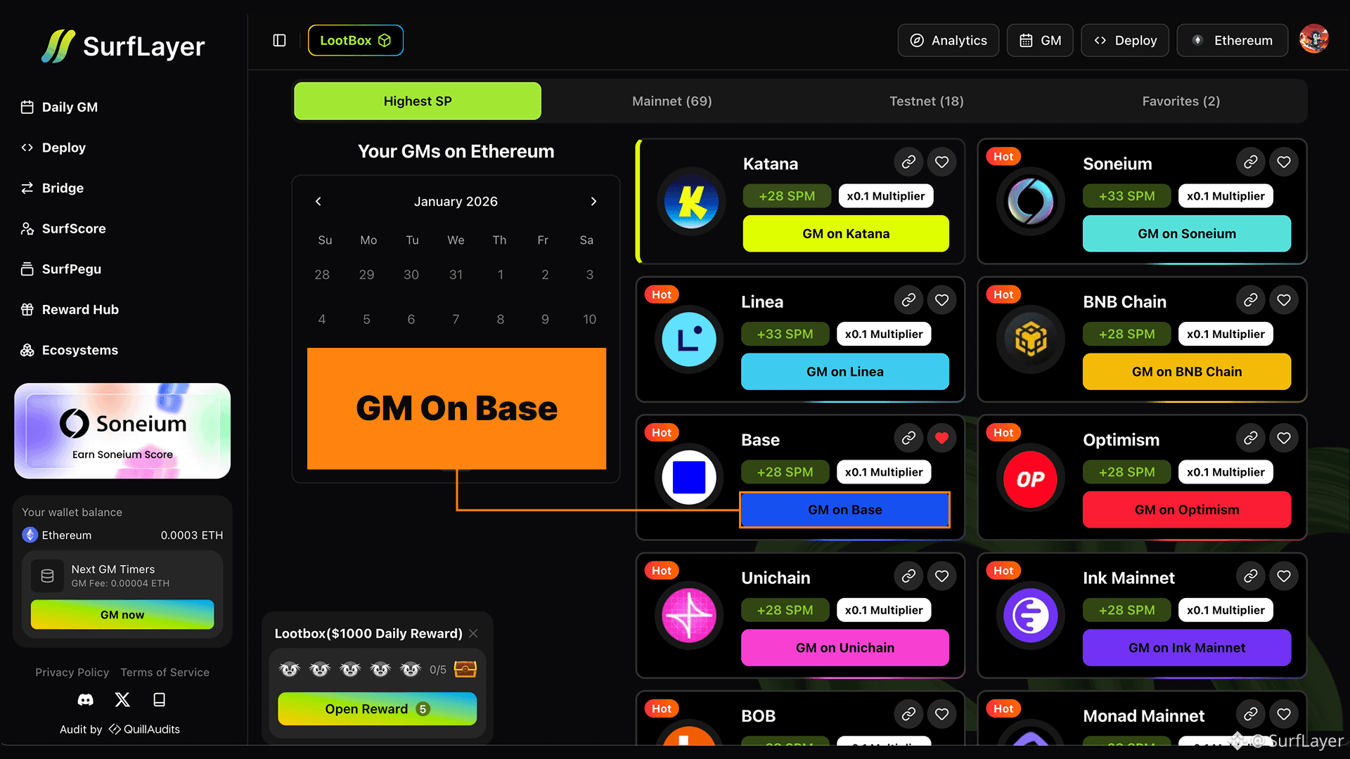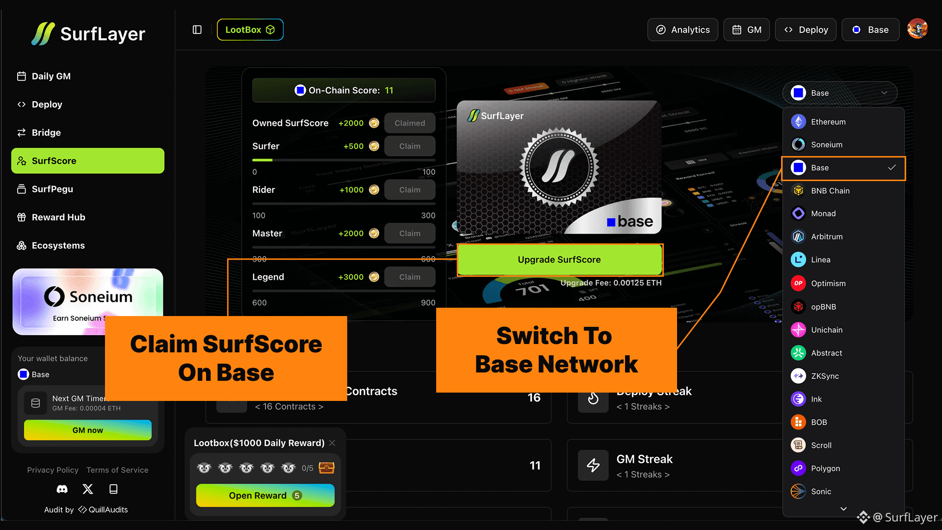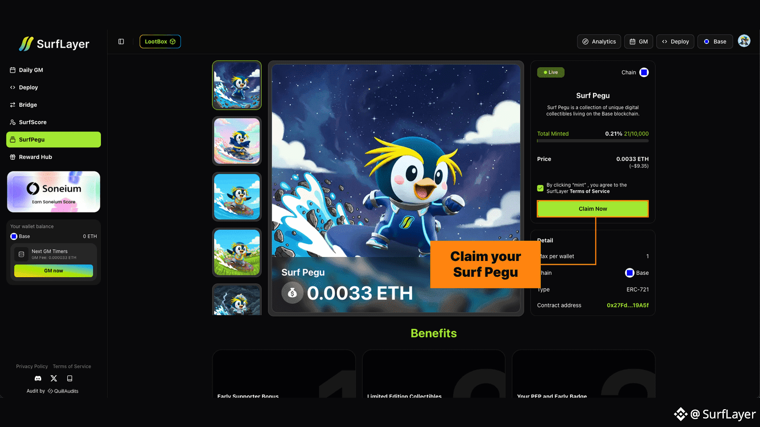 By combining low-cost interactions, intuitive tooling, and transparent reward mechanisms, SurfLayer empowers users to build a credible on-chain identity on Base — one action at a time.