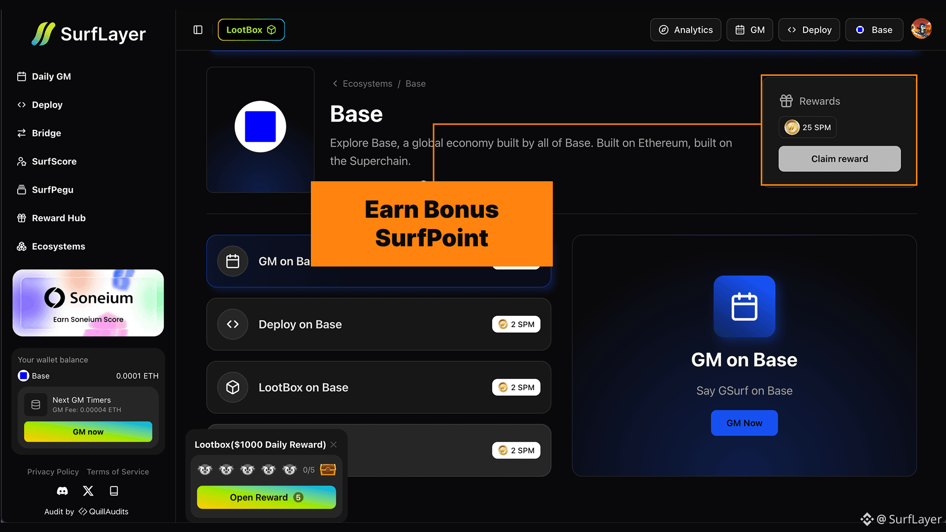 SurfLayer is designed to simplify this journey. By transforming everyday on-chain actions into structured and trackable interactions, SurfLayer helps users gradually build a verifiable on-chain identity across multiple networks - including Base.