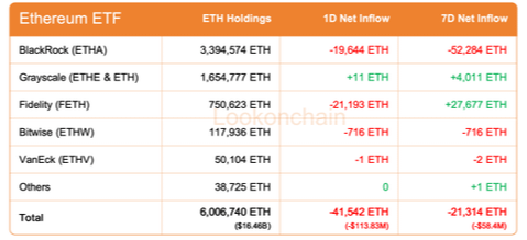 BlackRock: Také nezůstává pozadu s prodejem -19,644 ETH.