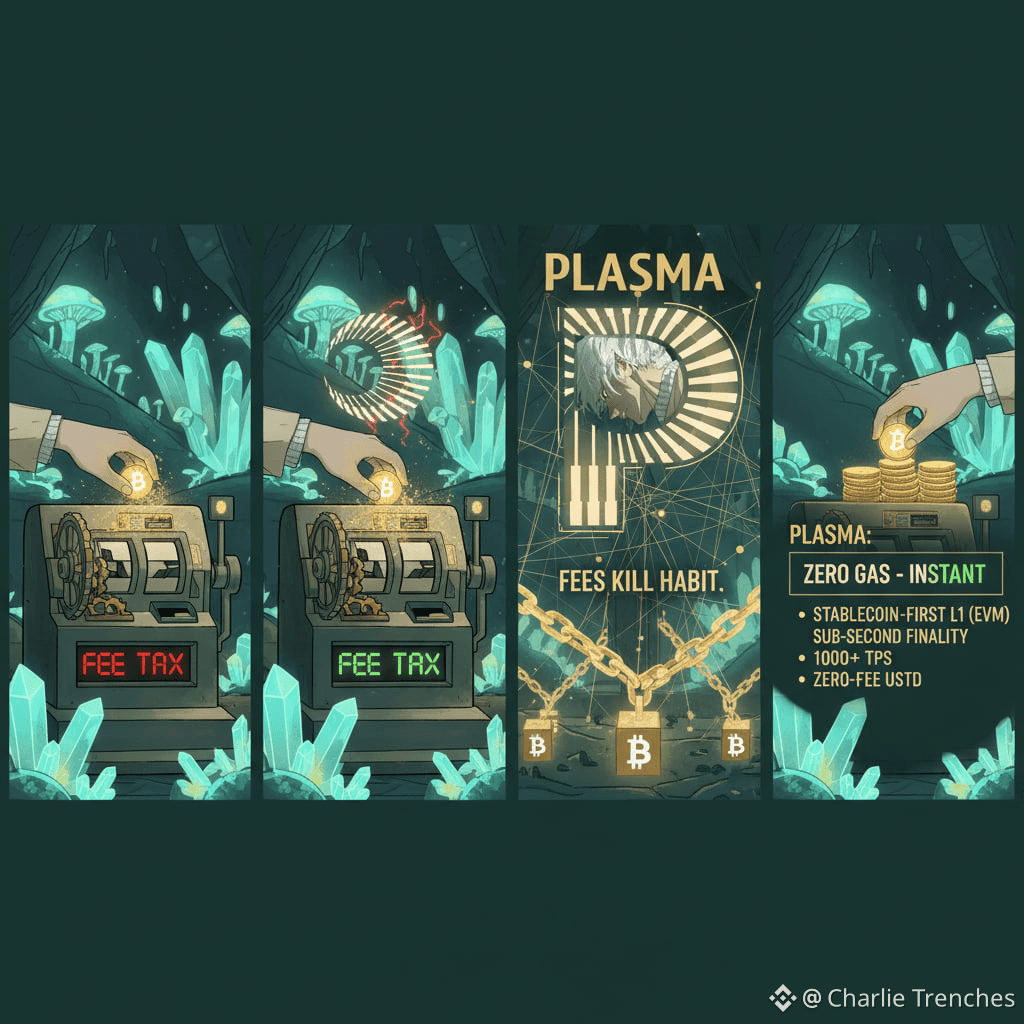 Stablecoin payments won’t go mainstream with a UX tax on every transfer. Fees kill habit. @Plasma is pushing the only answer that scales: zero-gas, instant settlement on a purpose-built L1 anchored to Bitcoin security