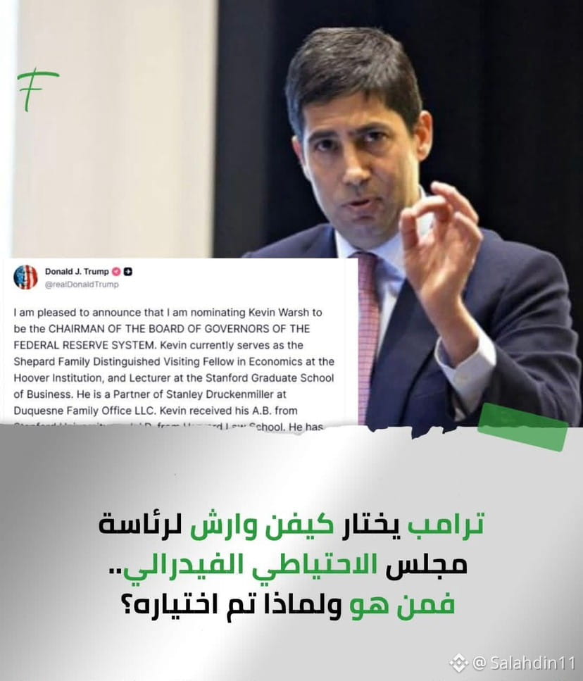 أعلن الرئيس دونالد ترامب، في منشور له على منصة (Truth) عن اختيار كيفن وارش ليكون رئيس مجلس محافظي النظام الاحتياطي الفيدرالي.