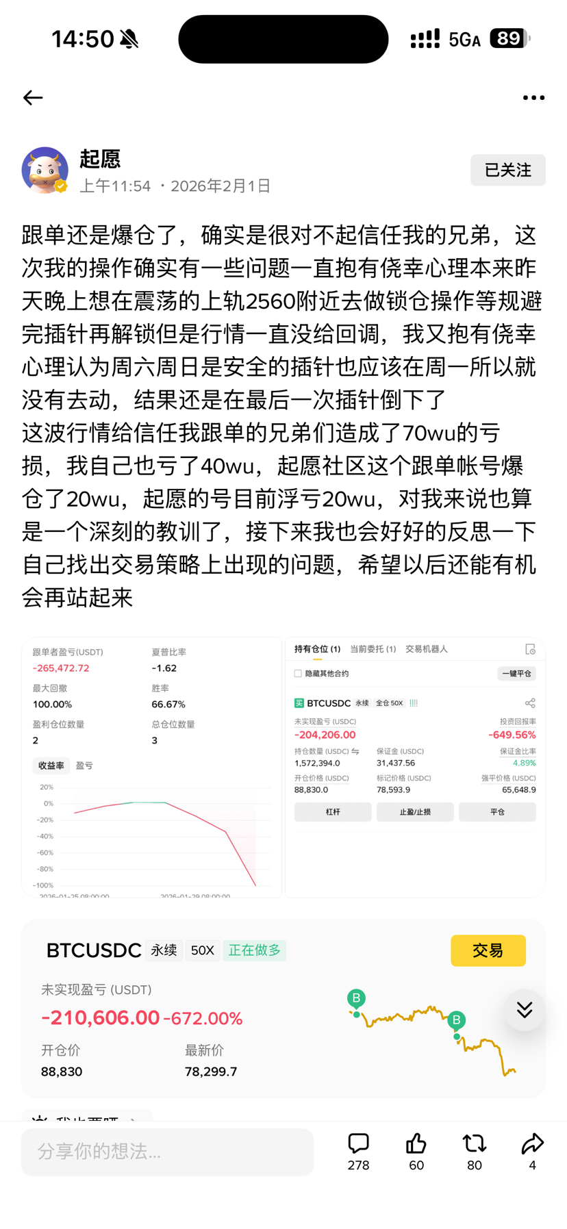 Upřímně řečeno, naše současné obchodování s fyzickými aktivy také není příliš dobré. V hodnocení směru jsme byli vždy spíše medvědí, původním úmyslem bylo pouze účastnit se malé úrovně odrazu, ale očekávání na pokles byla příliš optimistická. Původně jsme si mysleli, že BTC a ETH nebudou klesat tak rychle, ale propad zlata a stříbra přímo zničil všechna riziková aktiva, což vedlo k krátkodobému uvěznění, tuto chybu si přiznáváme.