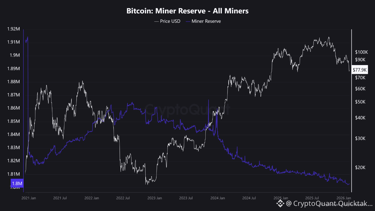 If price continues decline, this effect intensifies, increasing pressure to sell miners' reserves, which today stand at around 1.8 million BTC and have been declining over last four years.