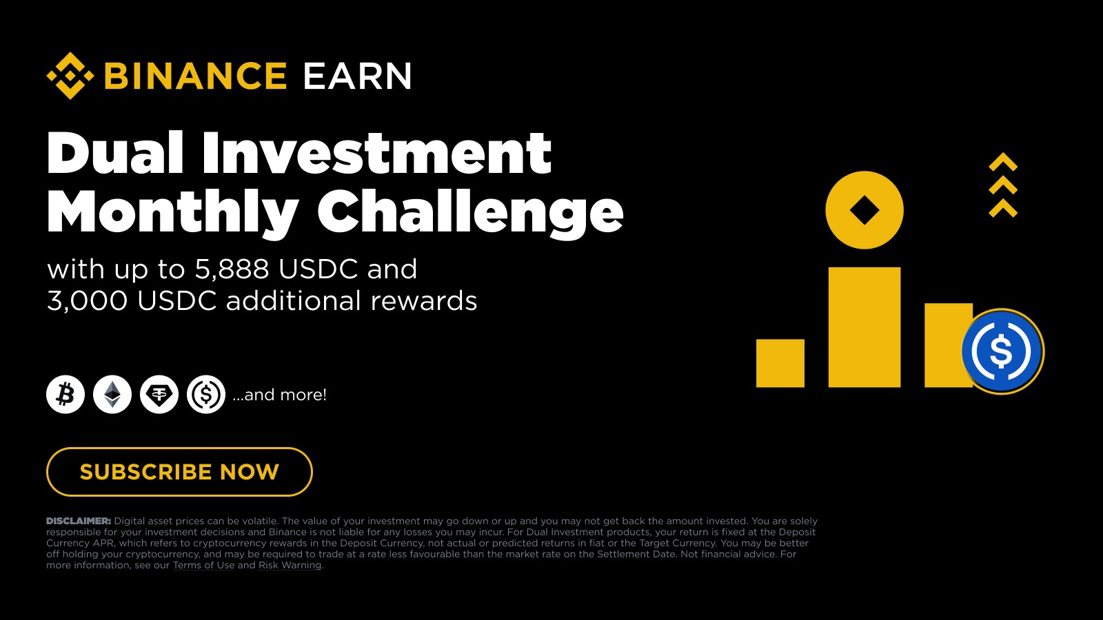 Binance Earn představuje únorovou měsíční výzvu pro všechny uživatele Dual Investment, s možností získat až 5,888 USDC a 3,000 USDC dalších odměn.