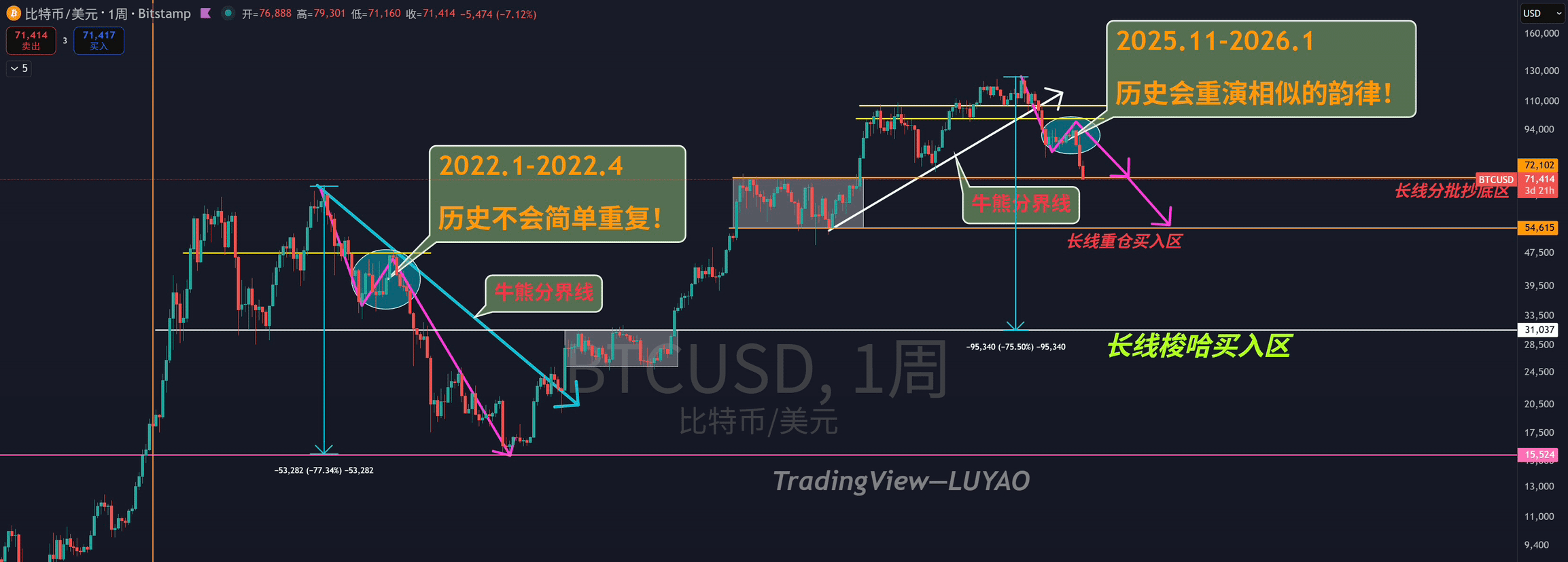 Pokud se podíváme na týdenní úroveň, skutečně jsme již dokončili první vlnu oživení medvědího trhu, nyní dochází k urychlenému poklesu, druhá fáze bude fáze, kdy dojde k nejhlubšímu poklesu, tyto dva dny budou nejvíce mučivé a také to bude období, kdy dojde k nárůstu ztrát.