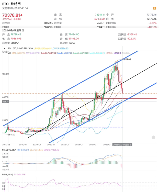 1. Pokud zvolíte nejsilnější podpůrnou úroveň, mělo by to být místo, kde se protíná červená horizontální krční linie a dolní okraj modré trendové linie. Pokud chce BTC dosáhnout tohoto místa, odhaduji, že to potrvá přibližně 5-6 měsíců, během kterých nebude příliš mnoho odrazů. Celkově je to nepříjemná záležitost, můžeme si dovolit ztratit body, ale čas si nemůžeme dovolit, ach.