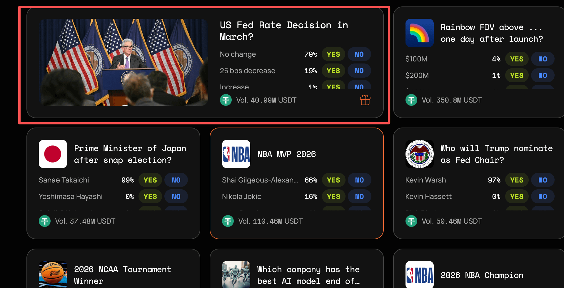 然后就可以挑一些话题来下注了。