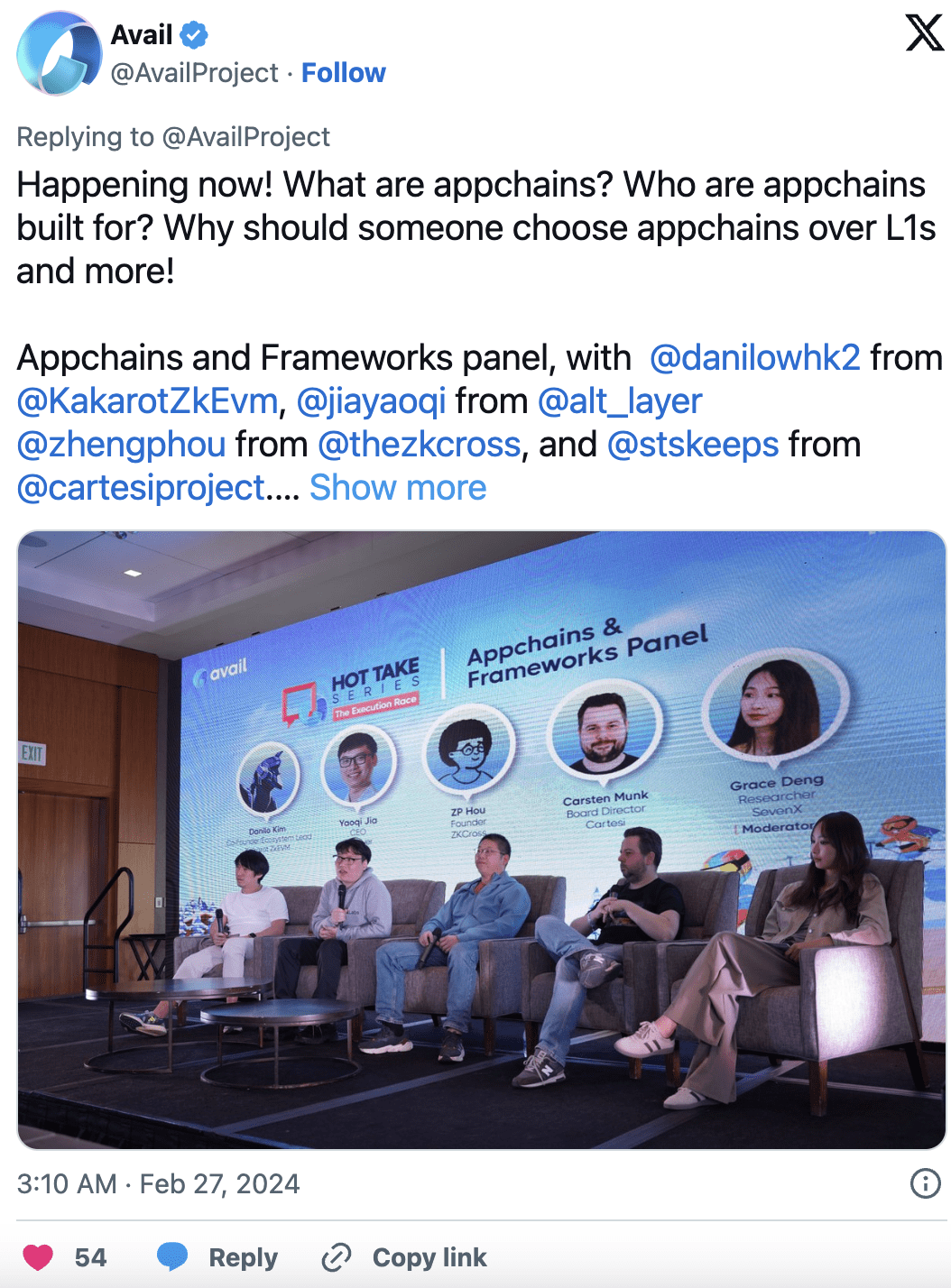 Carsten se zúčastnil panelové diskuse, aby se podělil o své postřehy o Appchains & Frameworks s Paima Studios, ZKCross a Kakarot zkEVM.