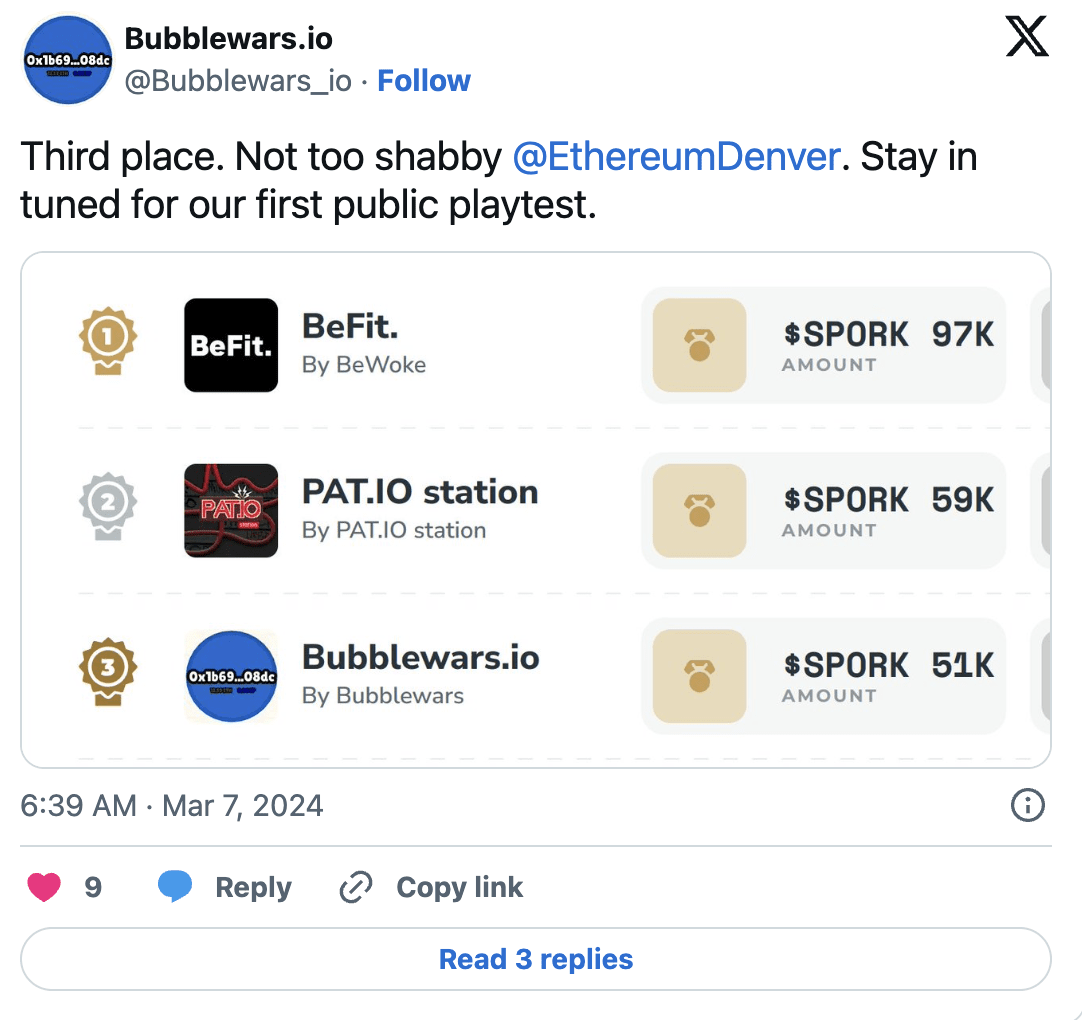 Upřímně blahopřeji VeriFido i Bubble Wars za to, že se stali finalisty na ETHDenver 2024! 🤩