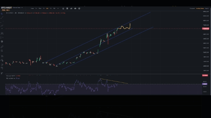 🔵BTC may experience a slight correctionor sideway in the trendline and conquer anew price mark of 75-80k USD.