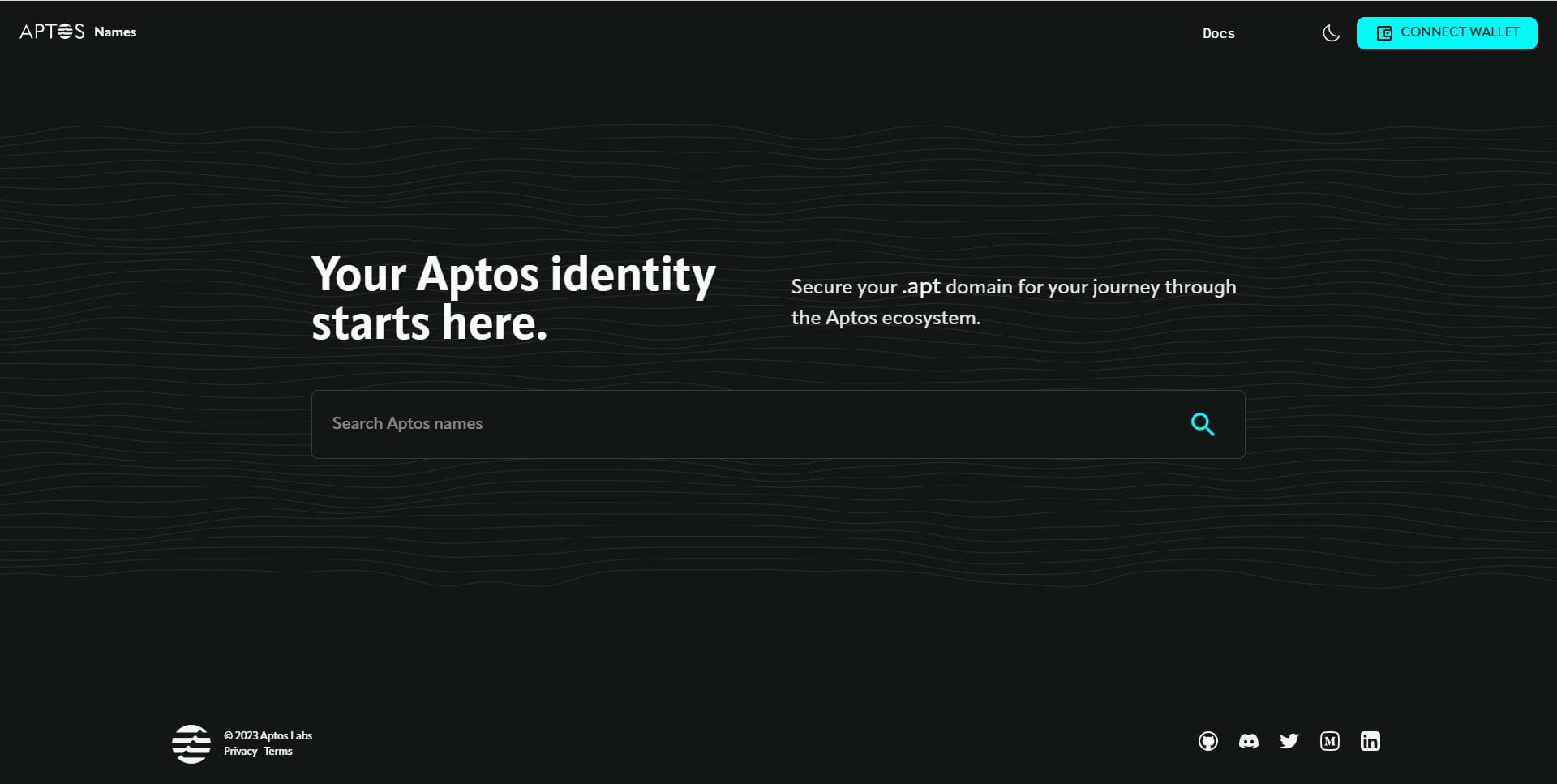 Navštivte platformu Aptos Names: https://www.aptosnames.com/