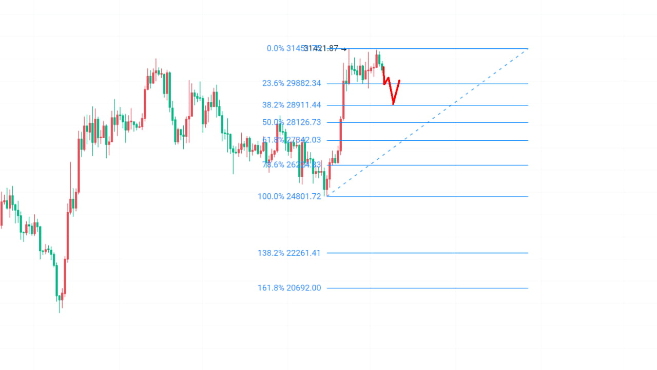 Jakmile se pokles začne dotýkat linie 28900, jděte dlouho na odraz a podívejte se kolem 29900. Pokud je to v souladu s myšlenkou, můžete pokračovat v shortování testováním tlaku 30 000 a podívat se na 50% pozici Fibonacciho sekvence kolem 28 100, 27 500, abyste pokryli pozici, a pak se podívat na odraz malého středová čára a nové výšky Toto je navazující rozložení.