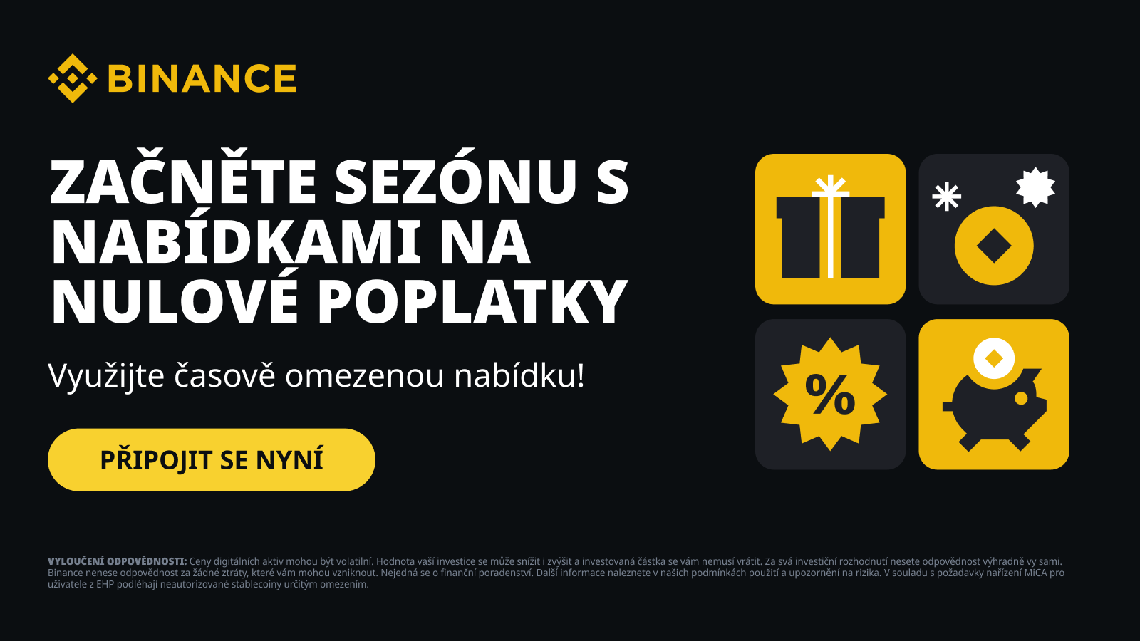 Upozornění: Ceny digitálních aktiv jsou vystaveny vysokému tržnímu riziku a cenové volatilitě. Hodnota vaší investice může klesnout nebo vzrůst, a možná neobdržíte zpět investovanou částku. Jste výhradně zodpovědní za svá investiční rozhodnutí a Binance nenese žádnou odpovědnost za jakékoliv ztráty, které byste mohli utrpět. Měli byste investovat pouze do produktů, které znáte a kde rozumíte rizikům. Měli byste pečlivě zvážit své investiční zkušenosti, finanční situaci, investiční cíle a tolerance k riziku a konzultovat nezávislého finančního poradce před jakoukoliv investicí. Tento materiál by neměl být chápán jako finanční poradenství. Další informace naleznete v našich smluvních podmínkách a Upozorněních na riziko.