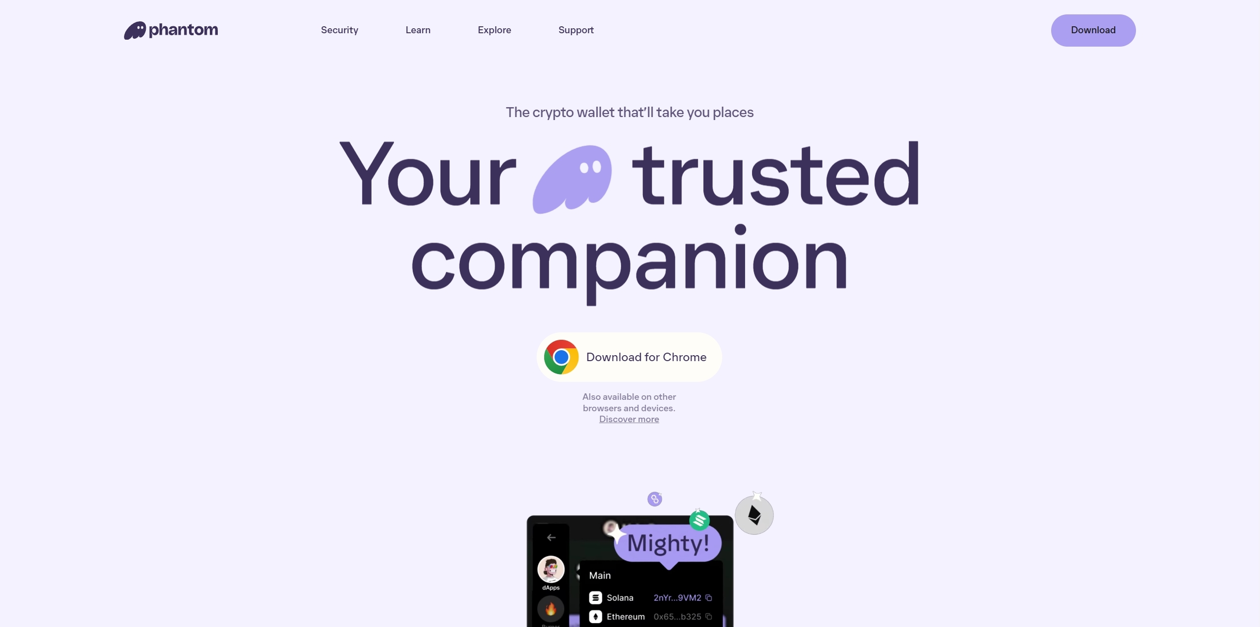 Phantom ist eine digitale Wallet, die für das Solana- und Ethereum-Ökosystem entwickelt wurde und darauf abzielt, Benutzern eine sichere und einfache Erfahrung beim Speichern, Übertragen und Handeln von Krypto-Assets zu bieten.
