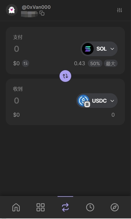 Wählen Sie den SOL-Token, den Sie besitzen, und wählen Sie ein anderes Handelspaar (z. B. USDC) und führen Sie 5-10 Token-Austausche durch, um die Handelsaktivität Ihrer Wallet zu erhöhen.