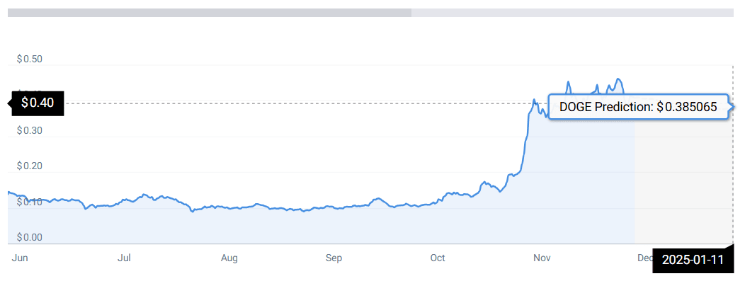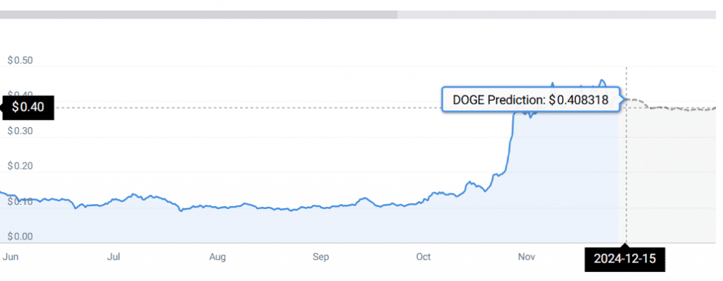 Laut CoinCodex könnte Doge bis zum 15. Dezember 2024 in die Höhe schnellen und einen stabilen Preis von 0,40 US-Dollar halten.