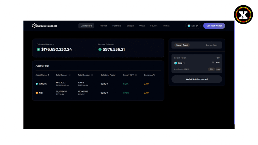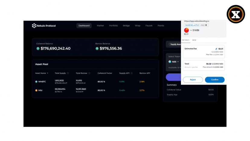 - Geben Sie einen Betrag von $NIBI ein, den Sie leihen möchten.