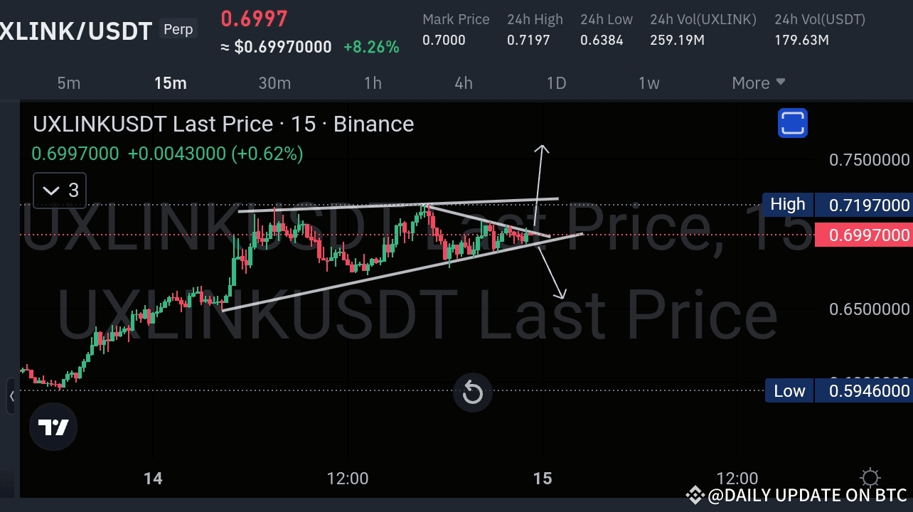 UXLINK/USDT - Symmetrisches Dreiecksmuster im 15-Minuten-Chart ⚠️