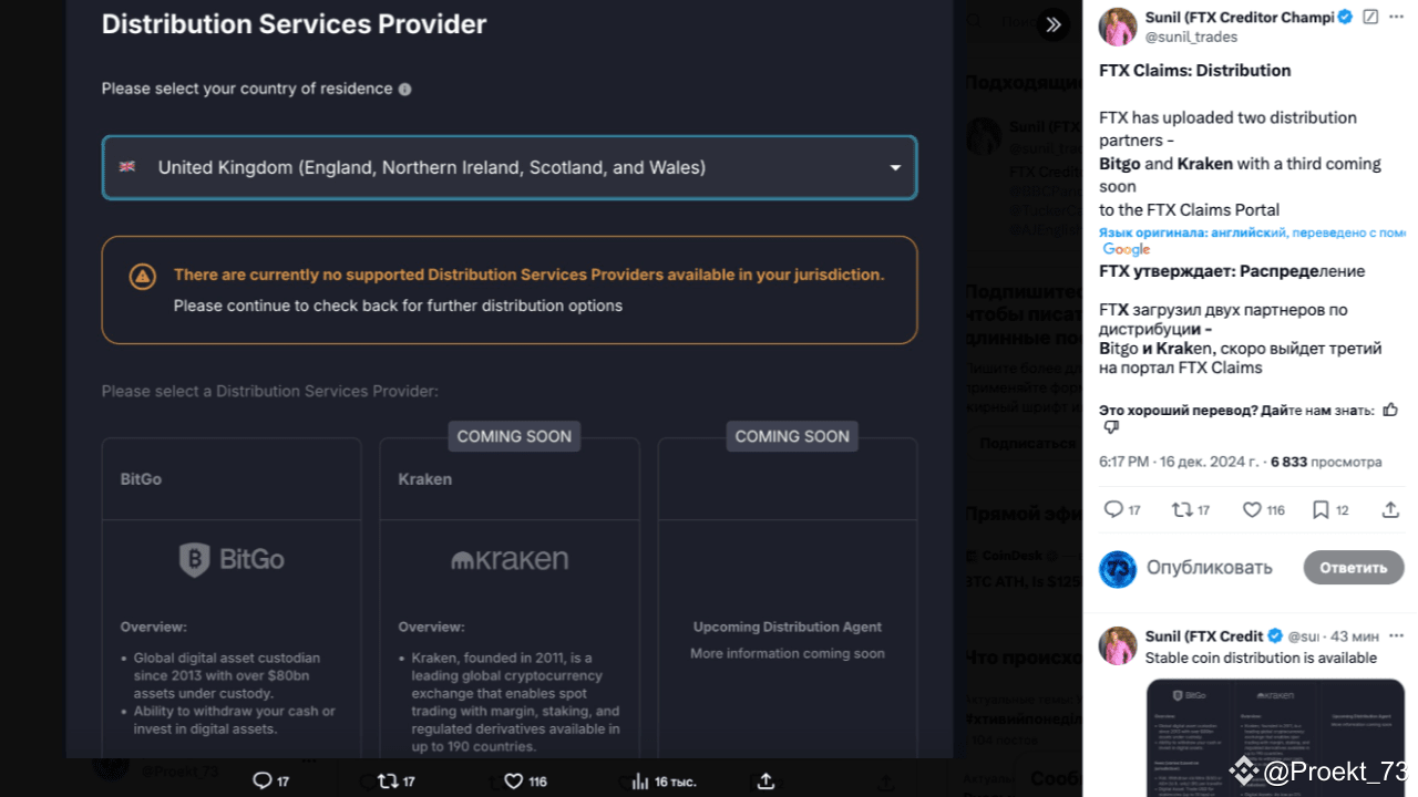 „FTX hat zwei Vertriebspartner geladen – Bitgo und Kraken, und ein dritter wird bald auf dem FTX Claims-Portal verfügbar sein.“