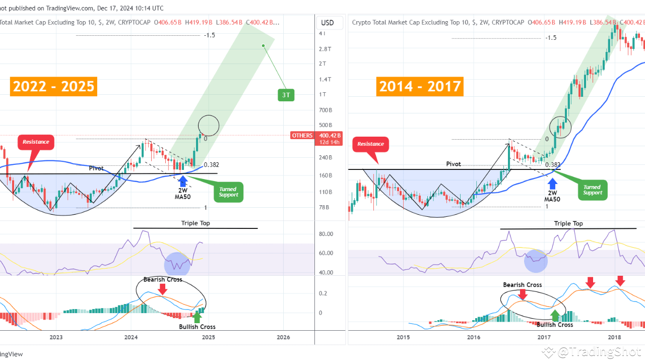 Unser letzter Altseason-Call war genau vor zwei Monaten (18. Oktober, siehe Chart unten), was sich als das genaue Niveau herausstellte, an dem die neue Rallye der gesamten Krypto-Marktkapitalisierung (ohne die Top 10) begann: