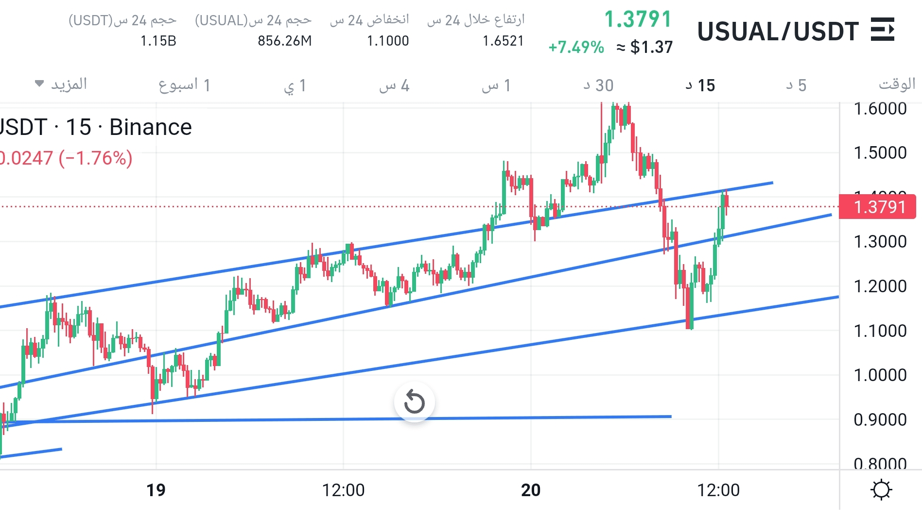 Im kürzeren Zeitrahmen (15 Minuten) handelt der Preis innerhalb eines klaren Aufwärtskanals mit einem kontinuierlichen Test der oberen Widerstandslinie.