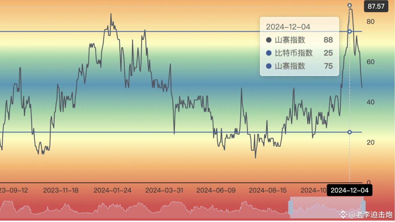 Was den Altcoin-Höchststand betrifft, habe ich Anfang Dezember, etwa ein bis zwei Wochen im Voraus, gesagt, dass wir aufpassen sollten, wenn der Altcoin-Index über 85 steigt, da dies ein Risiko darstellt. Tatsächlich begann der Rückgang bei einem Höchststand von 88. Ich habe immer die Überzeugung vertreten, dass eine Altcoin-Erholung nicht nachhaltig ist, und dass man beim Rotieren rechtzeitig Gewinne mitnehmen sollte.