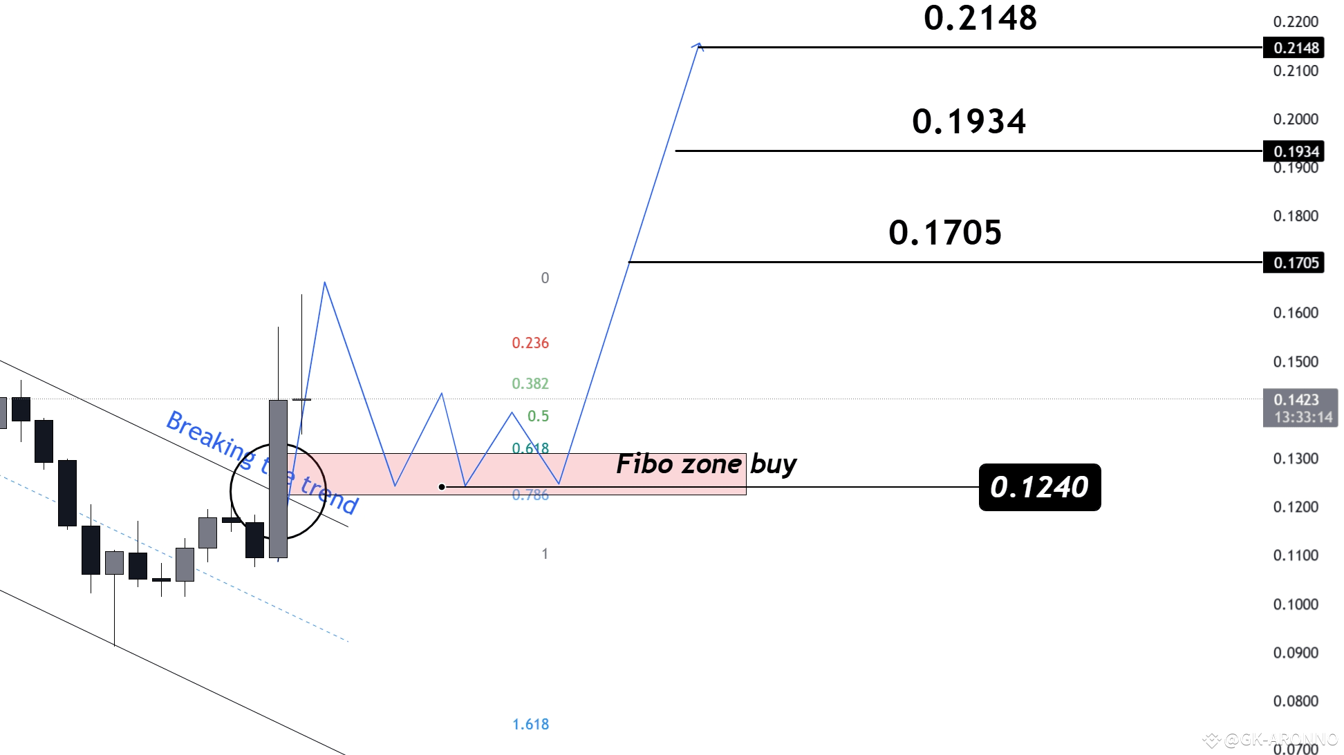Unterstützungszone (Fibonacci-Kauf): $0.1240