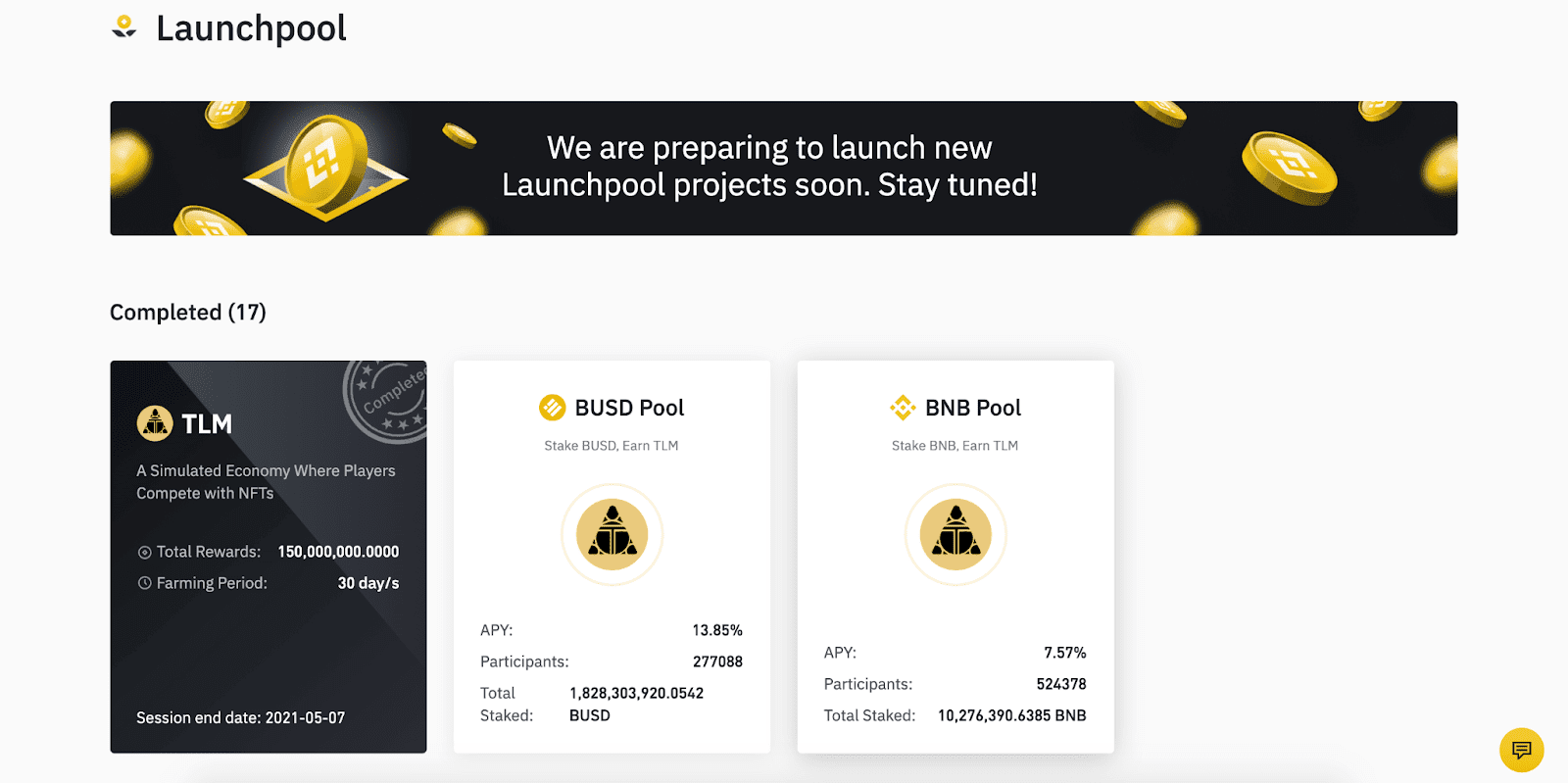 2. Scrollen Sie dann nach unten, um [Launchpool] und die Liste der verfรผgbaren und abgeschlossenen Projekte zu finden.