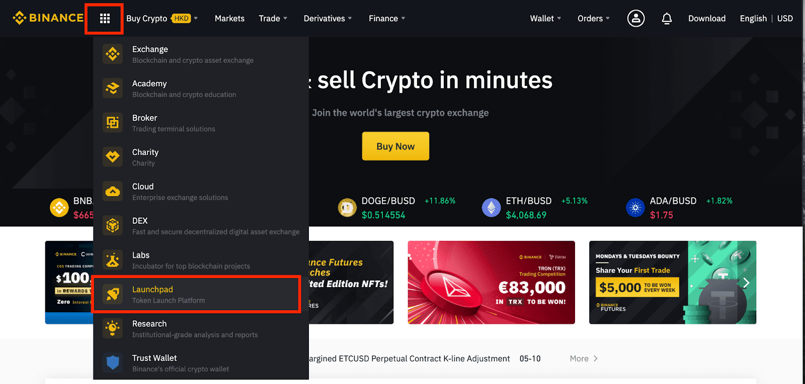 1. Melden Sie sich bei Ihrem Binance-Konto an und klicken Sie auf die Navigationsschaltflรคche โ [Launchpad].