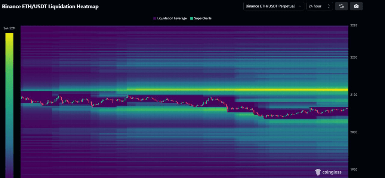 Die Liquidations-Hitzekarte von Binance zeigt, dass ETH Aufwärtsliquidität hat, was das Potenzial für eine Aufwärtsbewegung im längeren Zeitrahmen verstärkt. Für eine signifikante Preisbewegung könnte es eine gute Strategie sein, ETH langfristig zu halten.