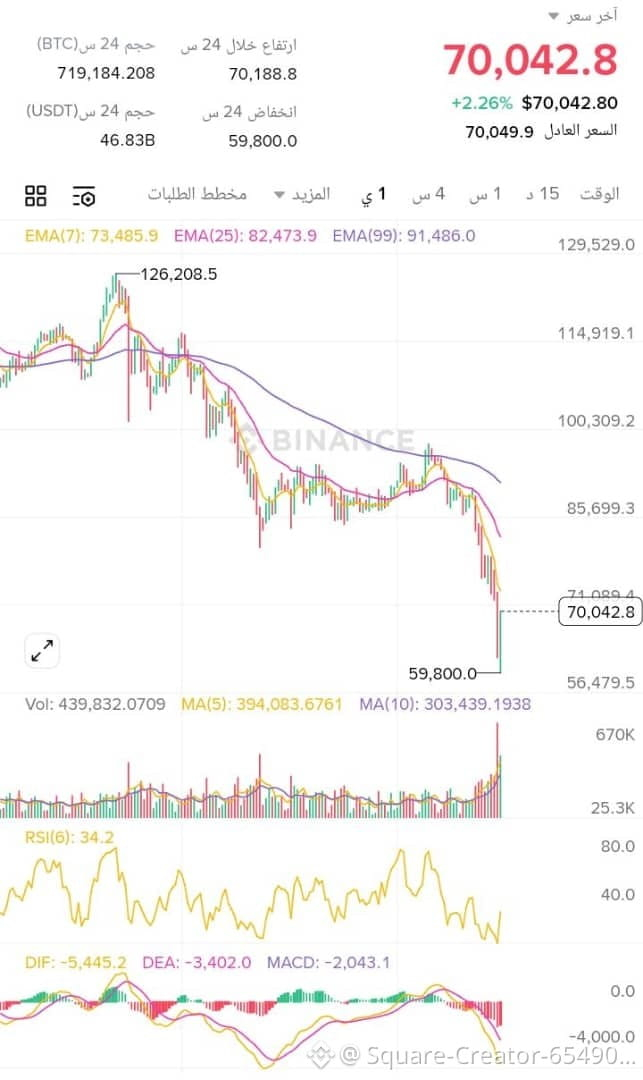 الثبات السعري: الاستمرار فوق قاع الـ 60,000 وعدم كسره بأي حال.